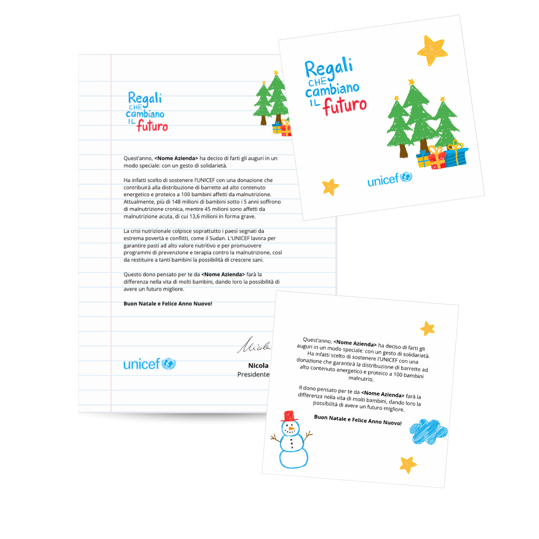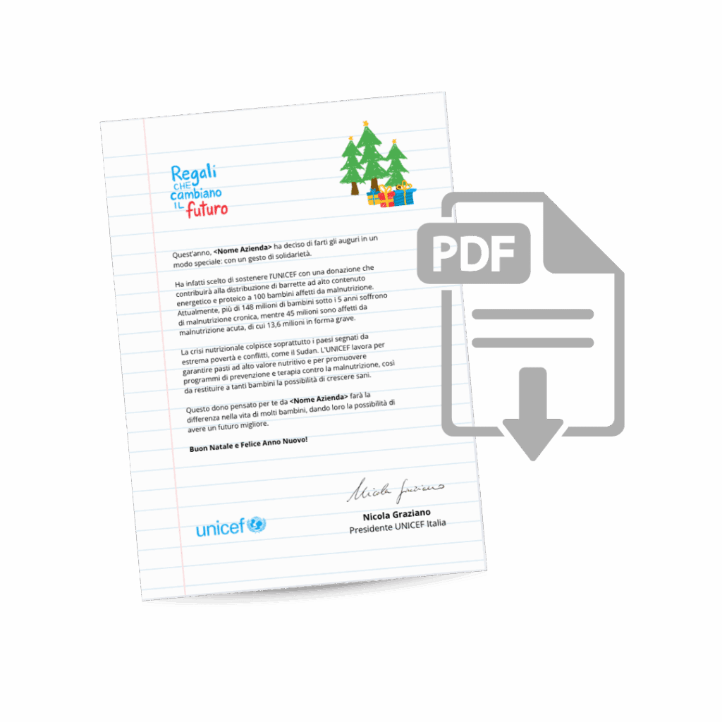 Scegli un regalo solidale da donare insieme all’UNICEF e ricevi una lettera cartacea per comunicarlo.